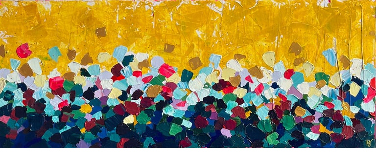 "Golden Transition" | Acrylic on canvas, 2026 | 16" x 40" | $640